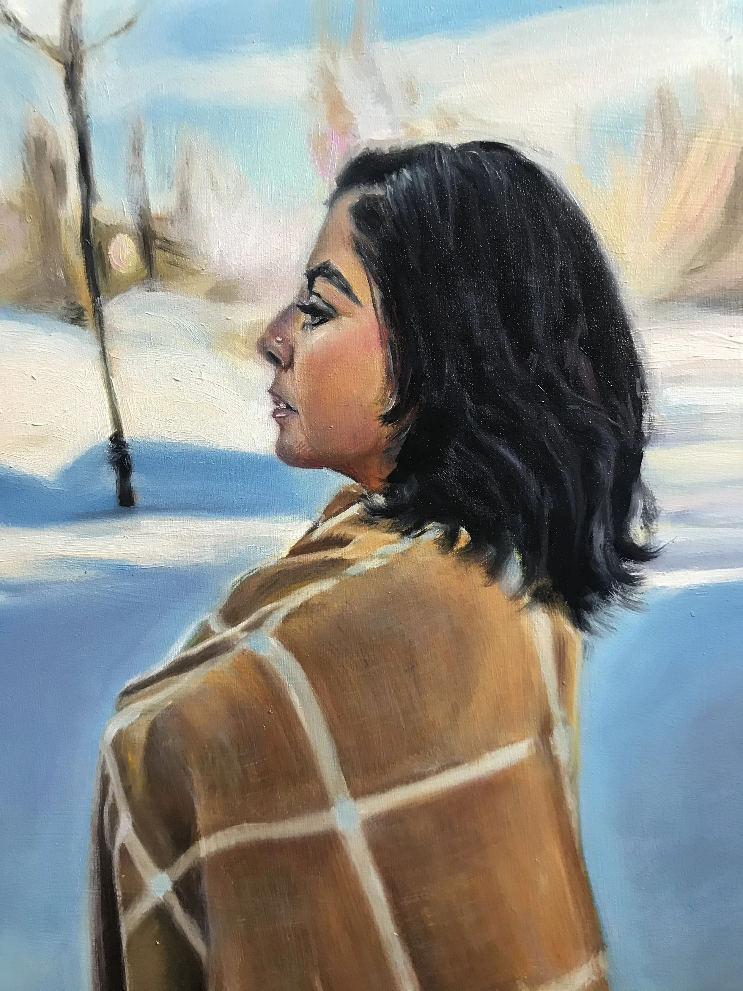 This was painted from a small vintage photo, it was so small it fit in my palm. This painting is 10X10 inches (this is a crop). If you have an old photo you would love to capture in paint, it is 100% possible!