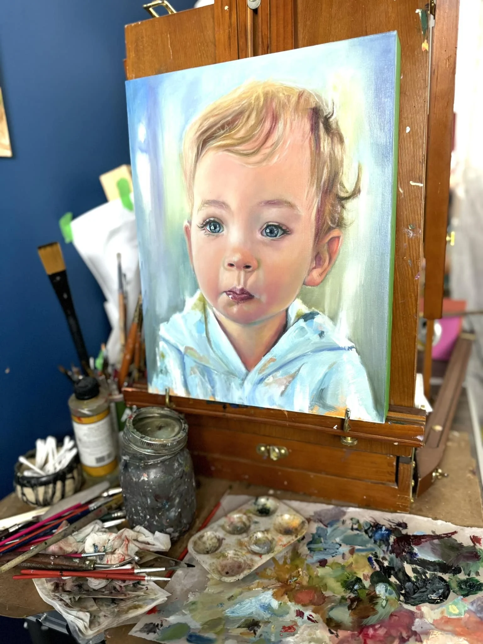 Luckily, since I work in two different forms of painting I’m able to offer the choice of what medium to have your portrait painted with. “Medium” is the type of paint a painting is done in.
